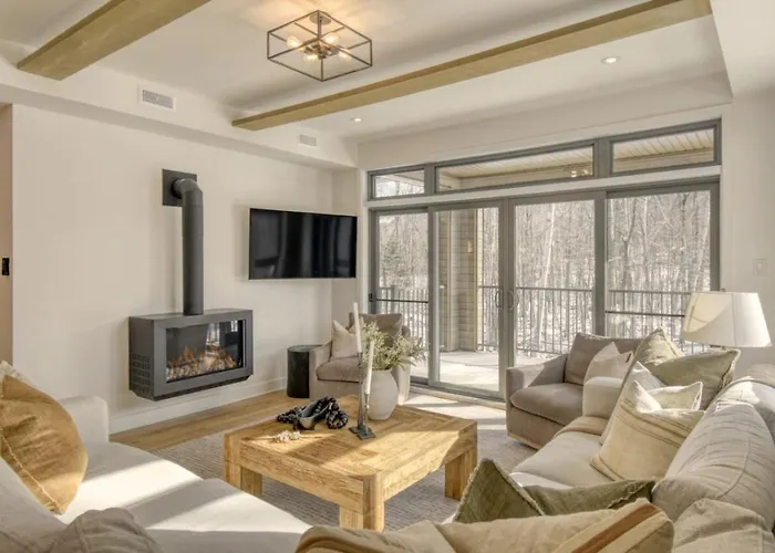 Under vistelsen i villan The Fawn Tremblant At Verbier, 3 Bedroom Retreat Mont-Tremblant kan du njuta av bastu eller besöka Tonga Lumina, som ligger mindre än 1 km bort. Den här villan, som ligger cirka 20 minuter till fots från Mont Tremblant Resort, lockar gästerna med fitnesslektioner och utomhusbassäng.
